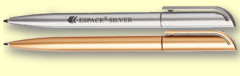 The Espace Silver/Gold advertising pens adds that extra sparkle for a good giveaway promotional pen. As above but in all gold or silver. Black ink. |